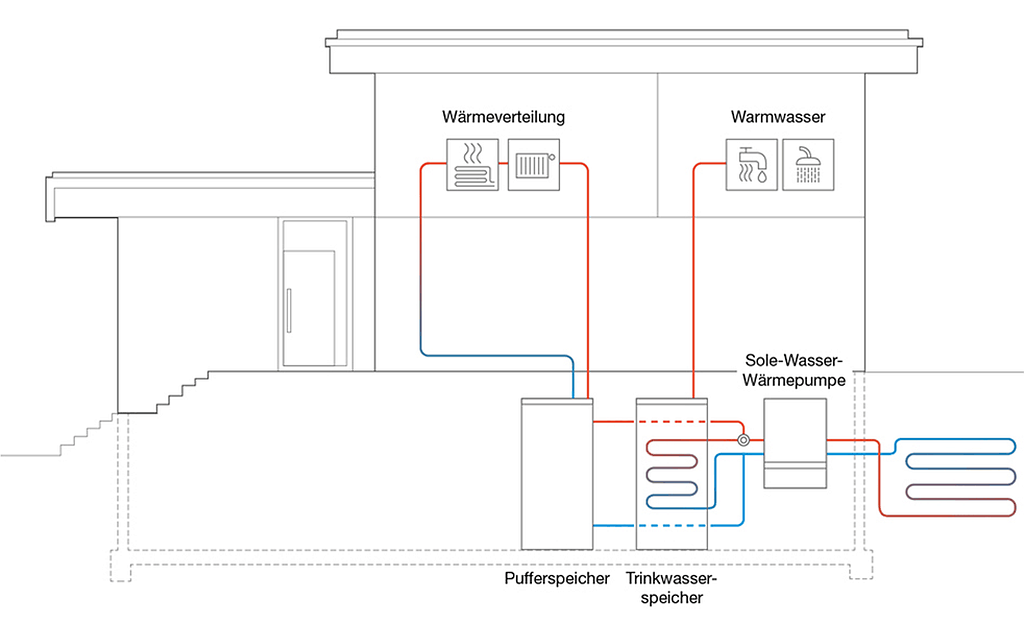 Ihre Wärmepumpe ist Teil einer Hybridheizung : In einem hybriden Heizsystem (auch bekannt als bivalentes System ) wird die Wärmepumpe mit einem oder mehreren anderen Wärmeerzeugern gekoppelt. Das können beispielsweise eine Solarthermieanlage, ein Pelletofen oder auch eine Gasheizung sein. Der Pufferspeicher übernimmt dabei die Funktion eines Knotenpunkts bzw. einer Schnittstelle, in dem alle Wärmeströme zusammenlaufen. Das ermöglicht einen effizienten Betrieb aller eingebundenen Wärmeerzeuger, das Speichern regenerativer Energie von einer Solarstation und das energiesparende Erwärmen von Frischwasser.